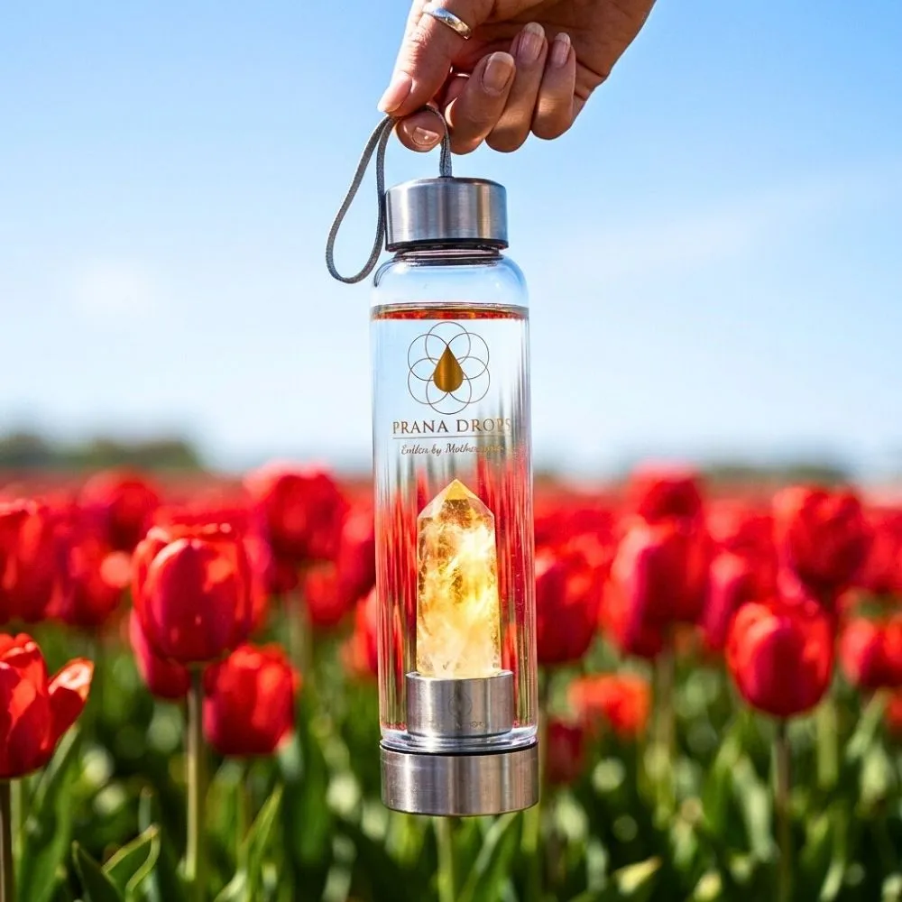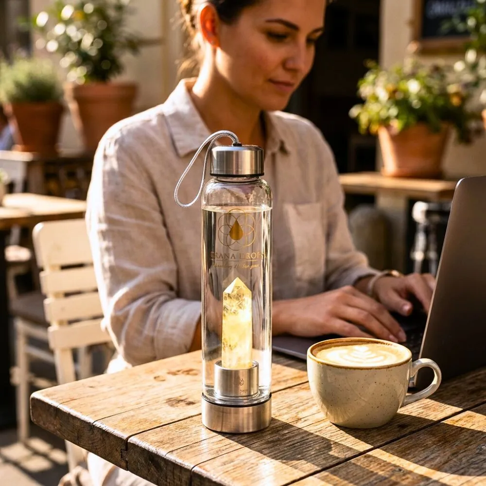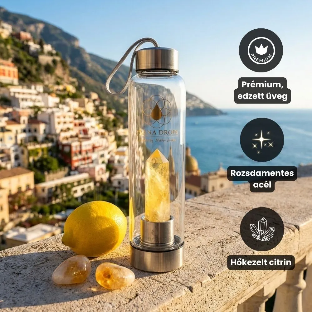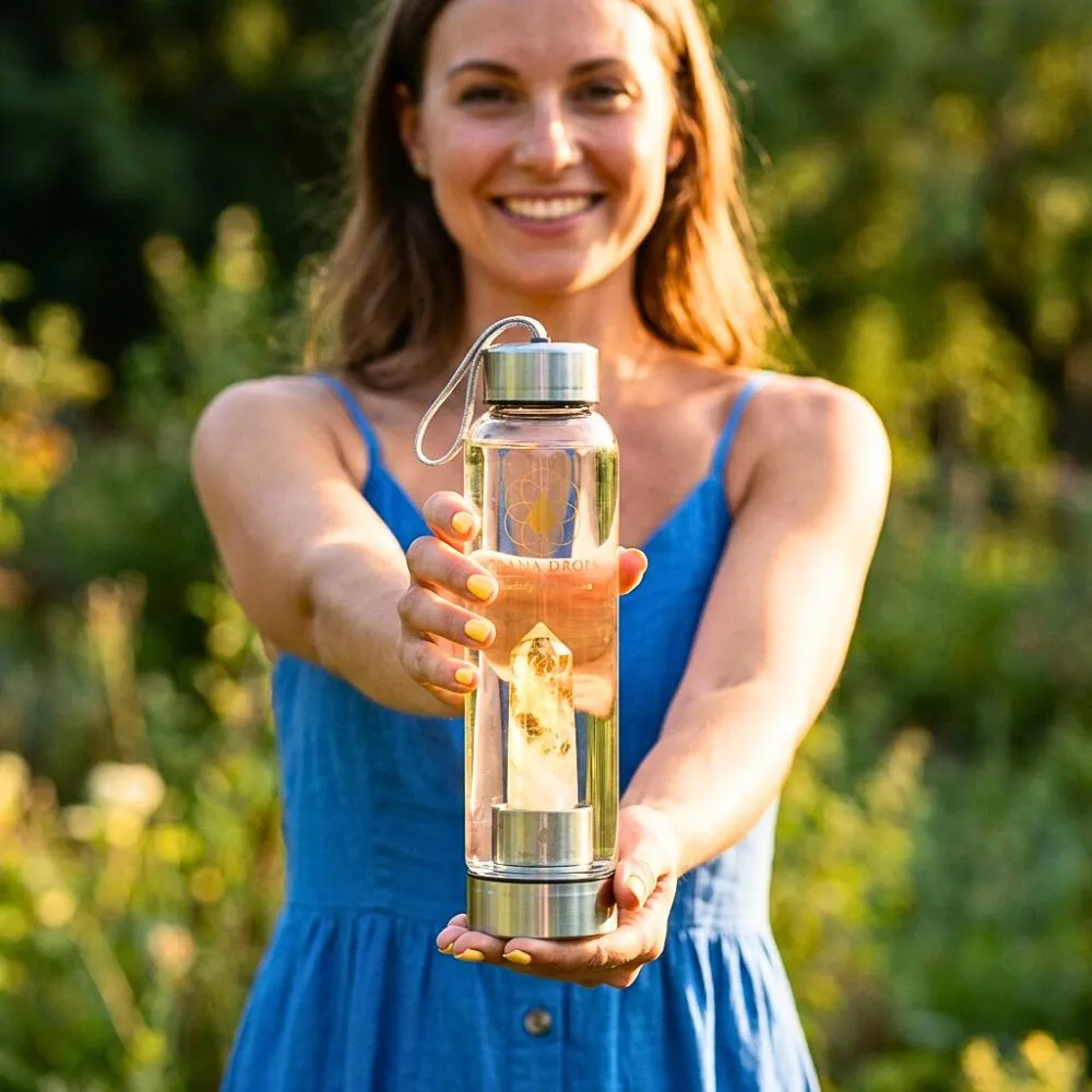 A citrin a belső napfény köve – a teremtő erő, az életerő és a szívből fakadó öröm szimbóluma. Ez a kulacs azokhoz szól, akik szeretnék újra felébreszteni magukban a lelkesedést, visszahívni az életbe vetett bizalmat, és bátran haladni a saját útjukon.